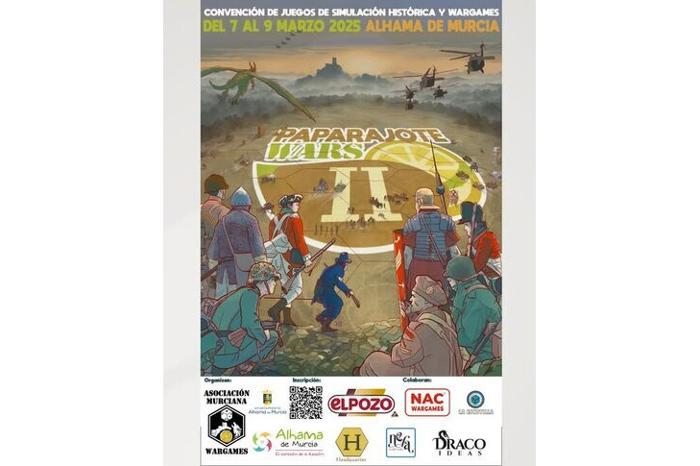 Del 7 al 9 de marzo, Alhama de Murcia será el escenario de la segunda edición de las 'Paparajote Wars', la convención de Juegos de Simulación Histórica y Wargames de la Región de Murcia. El evento, organizado por la Asociación Murciana de Wargames 'Rey Lobo' (AMW) en colaboración con el Ayuntamiento, se celebrará en el pabellón deportivo Sierra Espuña.