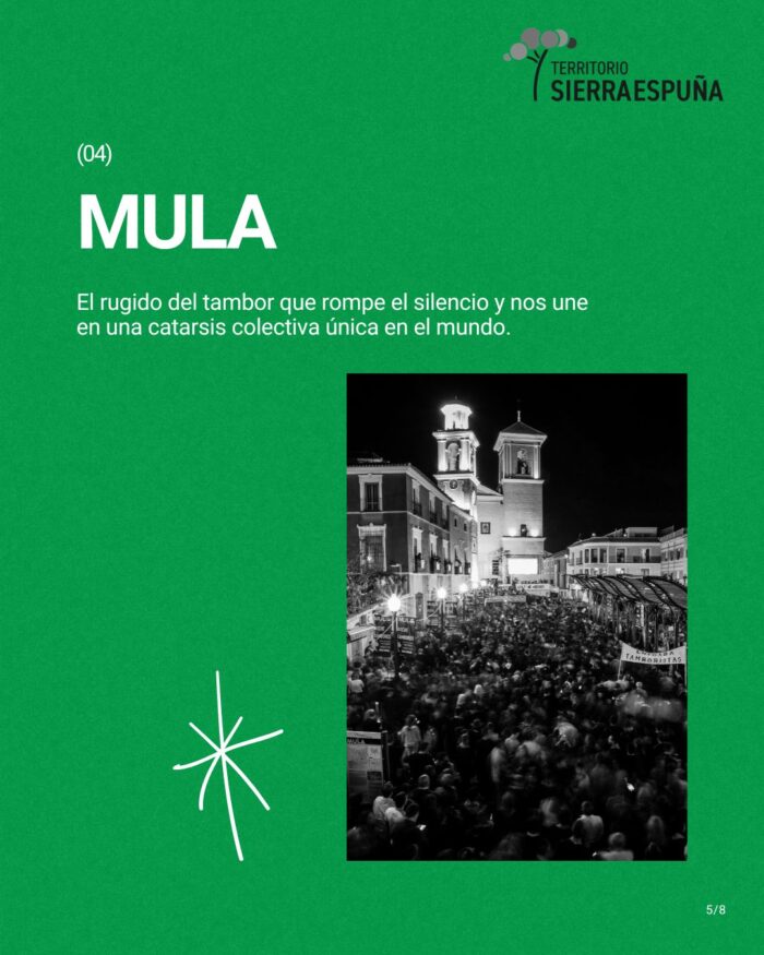 No se puede hablar de nuestra Semana Santa sin mencionar la Noche de los Tambores. Declarada Fiesta de Interés Turístico Internacional y Patrimonio Inmaterial de la Humanidad por la UNESCO, el Martes Santo a medianoche, Mula estalla. Las túnicas negras y tambores golpean al unísono en una catarsis colectiva que dura hasta el Miércoles Santo, volviéndose a tocar en Viernes Santo y Domingo de Resurrección. Es adrenalina pura, tradición y el orgullo de un pueblo que suena con fuerza propia. Esta tradición pagana se mezcla con la solemnidad de sus procesiones.